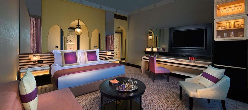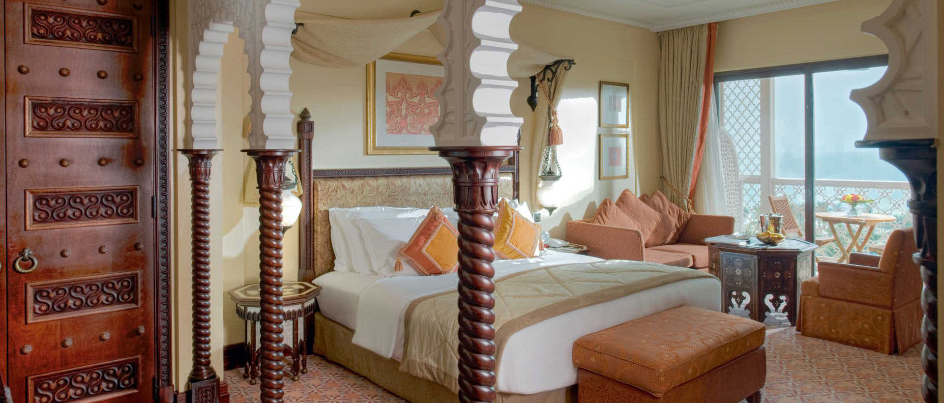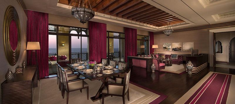Роскошные номера Arabian Gulf Suite приглашают своих гостей в мир арабской сказки. Ткани ручной работы и картины создают уютную и изысканную атмосферу, которая дополняется панорамными видами живописного курорта и безмятежных вод Персидского залива, открывающимися из окон и с балкона.
