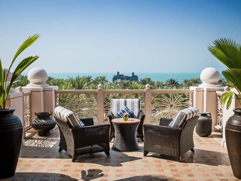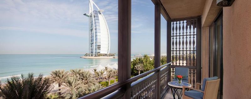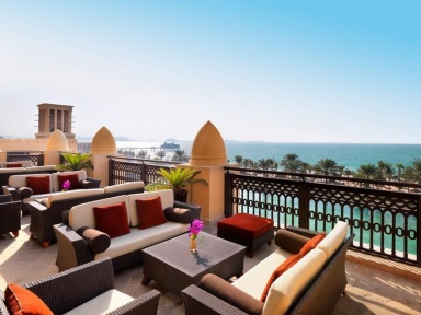 К услугам гостей — просторная жилая и обеденная зоны. Вид с балконов и окон отеля- на сады и каналы комплекса Мадинат, а также на Персидский залив и отель Burj Al Arab.