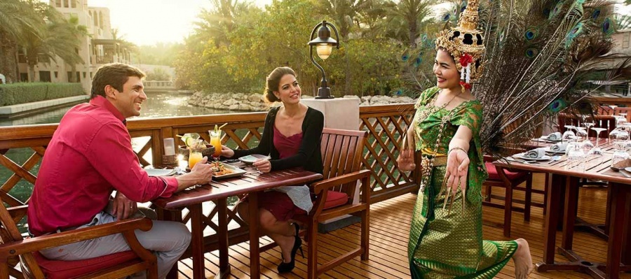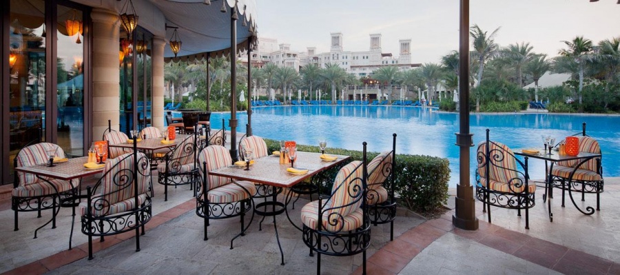 Большое количество кафе и ресторанов находится на всей территории Мадината. Дополнительно готи отеля могут посещать рестораны других отелей комплекса Jumeirah International- более 50 ресторанов и баров. Столики в ресторанах нужно бронировать заранее, так как очень много желающих отдохнуть и обычно всё занято.