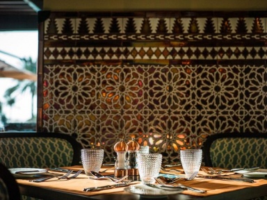 Удобно расположитесь в этом ярком и элегантном лаунж-баре и пробуйте деликатесы из Марокко, в которых прослеживается влияние французской кухни, включая изысканные десерты и пастийя (сладкий пирог с курицей). Приходите отведать любимые напитки жителей Эмиратов, обосновавшихся в Дубае: чай со специями и каракский чай, в по-домашнему уютной обстановке, неспешно наблюдая за тем, что происходит вокруг.