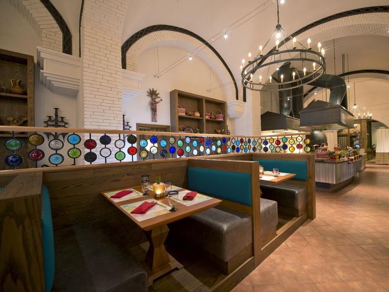 В амфитеатре есть кафе – многие туристы ужинают там, звучит живая музыка и можно покурить кальян. В ресторане Тоскана шумновато, однако блюда очень аппетитные. Аль Гамбра – ресторан испанской кухни также нравится нашим туристам. Есть рестораны, которые входят в ваучерную систему питания и которые не входят – это указывается в буклете в номере. Steak House, например, не входит, но очень нравится гостям Mina Salam Madinat Jumeirah несмотря на высокие цены – блюда там очень вкусные.